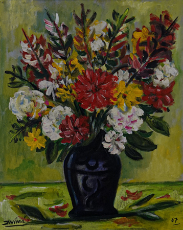 INIMÁ DE PAULA (1918 - 1999) Título: "Vaso de Flores" Técnica: óleo sobre tela Medidas: 50 x 40 cm Assinado: canto inferior esquerdo e dorso Data/Local: 1967 - Belo Horizonte Reproduzido no Convite deste Leilão. Com Certificado de Autenticidade de "Renot Art Dealer" averbado pelo Artista no verso, datado de 24 de Julho de 1995, São Paulo - SP e com firma de Renot reconhecida em cartório na mesma data.