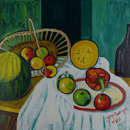 JORGE RODRIGUES (1955) Título: "Melancia" Técnica: óleo e acrílica sobre tela Medidas: 70 x 70 cm Assinado: canto inferior direito e dorso Data/Local: 15/08/2019 Reproduzido na página 16 do livro "Jorge Rodrigues - Sedução Pela Cor" de autoria de Eline Rocha.