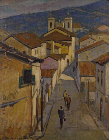 TÚLIO MUGNAINI (1895 - 1975) Título: Paisagem Técnica: óleo sobre tela colada em placa Medidas: 50 x 40 cm Assinado: canto inferior esquerdo Data/Local: 1964