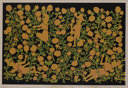 Título: Colhendo flores Técnica: serigrafia Tiragem: 8/100 Medidas: 30 x 45 cm Assinado: canto inferior direito Data/Local: 1973