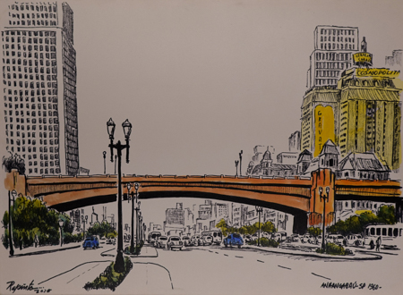 RENATO PINTO (1958) Título: "Anhangabaú - São Paulo 1960" Técnica: técnica mista sobre tela Medidas: 50 x 70 cm Assinado: canto inferior esquerdo Data/Local: 2025