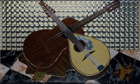 EDUARDO VERDERAME (1971) Título: Violão e bandolim Técnica: vinil adesivo recortado sobre poliestireno Medidas: 57 x 93 cm Assinado: não assinado Data/Local: 2003 Reproduzido em catálogo da exposição "Pintura versus fotografia" realizada no Paço das Artes em outubro de 2004.