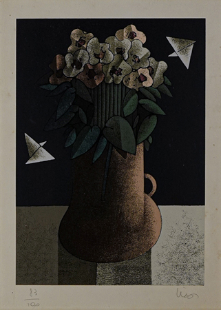 INOS CORRADIN (1929 - 2025) Título: Vaso com flores Técnica: serigrafia Tiragem: 83/100 Medidas: 34 x 25 cm Assinado: canto inferior direito Sobre o Autor Foto da Moldura DisponívelVoltar