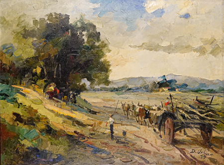 DJALMA URBAN (1917 - 2010) Título: Carro de bois Técnica: óleo sobre tela Medidas: 60 x 80 cm Assinado: canto inferior direito e dorso Data/Local: 1979