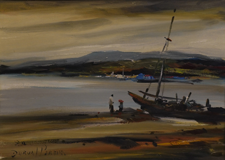 Título: Pescadores Técnica: óleo sobre placa Medidas: 24 x 33 cm Assinado: canto inferior esquerdo Moldura no estado.