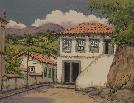 JOEL FIRMINO DO AMARAL (1951) Título: Paisagem Técnica: óleo sobre tela Medidas: 24 x 30 cm Assinado: canto inferior direito e dorso Data/Local: Ouro Preto