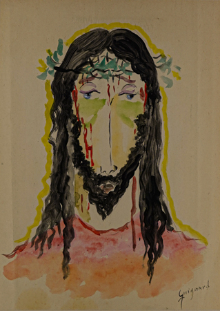 ALBERTO DA VEIGA GUIGNARD (1896 - 1962) Título: Cristo Técnica: aquarela Medidas: 28 x 20 cm Assinado: canto inferior direito Ex coleção Marchand Isaac Ficz, Rio de Janeiro - RJ. No estado (papel dobrado).