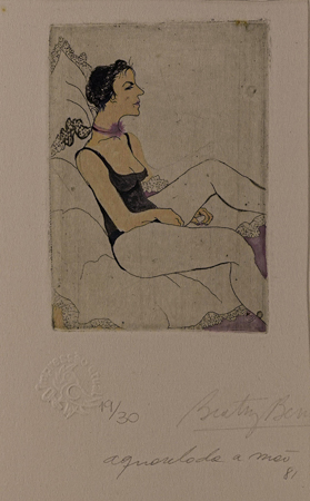 Título: Repousando Técnica: gravura aquarelada a mão Tiragem: 19/30 Medidas: 10 x 7 cm Assinado: canto inferior direito Data/Local: 1981