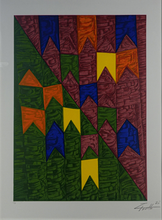 ZI FACELLA (1950) Título: Bandeirinhas Técnica: serigrafia Tiragem: P.A. Medidas: 57 x 40 cm Assinado: canto inferior direito Data/Local: 2025 Com relevo seco de Arte Prints, São Paulo.