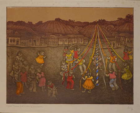Título: "Passa fita" Técnica: litografia aquarelada Tiragem: 51/60 Medidas: 40 x 54 cm Assinado: canto inferior direito Data/Local: 1980 No estado (papel manchado).