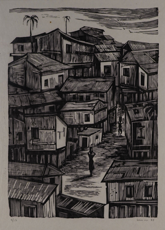 RENINA KATZ (1925) Título: Favela Técnica: xilogravura Tiragem: 8/15 Medidas: 34 x 24 cm Assinado: canto inferior direito Data/Local: 1955 Sobre o Autor Foto da Moldura DisponívelVoltar