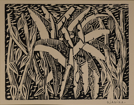 DJANIRA DA MOTTA E SILVA (1914 - 1979) Título: Bananeiras Técnica: linóleogravura Medidas: 15 x 20 cm Assinado: canto inferior direito Sobre o Autor Foto da Moldura DisponívelVoltar