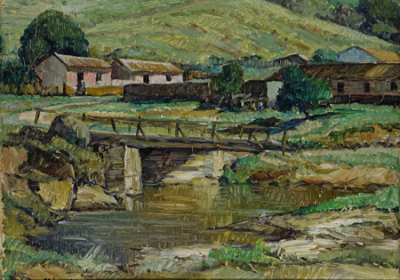 ALDO CARDARELLI (1915 - 1986) Título: Fazenda Técnica: óleo sobre placa Medidas: 24 x 33 cm Assinado: canto inferior esquerdo Data/Local: 1965 Sobre o Autor Foto da Moldura DisponívelVoltar