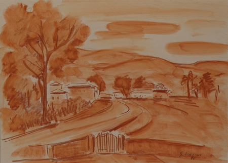 GIANCARLO ZORLINI (1931) Título: Paisagem Técnica: técnica mista sobre papel Medidas: 25 x 34 cm Assinado: canto inferior direito Data/Local: 1980 No estado (pequenas manchas).
