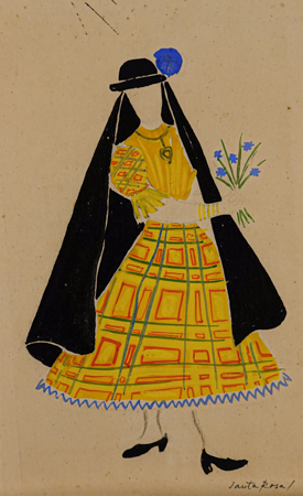 TOMÁS SANTA ROSA (1909 - 1956) Título: Moça Técnica: técnica mista sobre papel Medidas: 25 x 15 cm Assinado: canto inferior direito Sobre o Autor Voltar