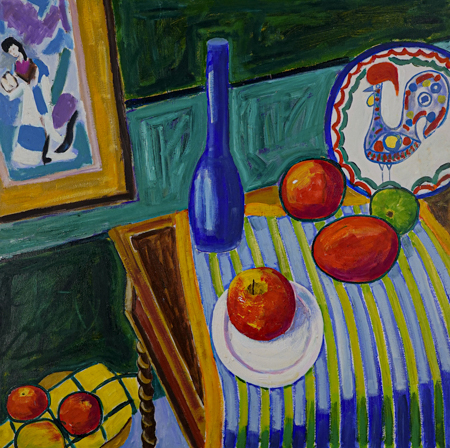 JORGE RODRIGUES (1955) Título: "Galo Português" Técnica: óleo e acrílica sobre tela Medidas: 70 x 70 cm Assinado: dorso Reproduzido no convite deste leilão e na página 23 do livro "Jorge Rodrigues - Sedução Pela Cor" de autoria de Eleni Rocha.
