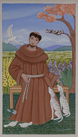 YRANI CALHEIROS (1956) Título: São Francisco Técnica: acrílica sobre tela Medidas: 50 x 30 cm Assinado: canto inferior direito Sobre o Autor Foto da Moldura DisponívelVoltar