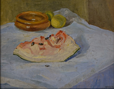 Título: Natureza morta Técnica: óleo sobre placa Medidas: 25 x 32 cm Assinado: canto inferior direito Data/Local: 1935 - Rio