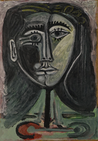 PABLO PICASSO (1881 - 1973) Título: Femme Técnica: técnica mista sobre papel Medidas: 39 x 28 cm Assinado: canto superior direito e dorso Data/Local: 16/06/1959 Reproduzido no Convite deste Leilão. Ex coleção Edson Arantes do Nascimento (Pelé), com dedicatória do Artista no dorso. (Obra de artista estrangeiro vendida como "atribuída")