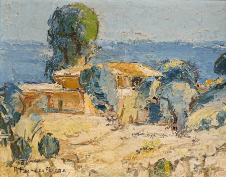 ANTONIO PACHECO FERRAZ (1904 - 2006) Título: Fundo de quintal Técnica: óleo sobre placa Medidas: 22 x 28 cm Assinado: canto inferior esquerdo Data/Local: 1986