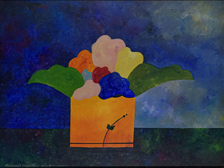 ALDEMIR MARTINS (1922 - 2006) Título: "Vaso laranja com flores" Técnica: acrílica sobre tela Medidas: 60 x 80 cm Assinado: canto inferior esquerdo e dorso Data/Local: 2003 Com Certificado de Autenticidade emitido pelo Estúdio Aldemir Martins.
