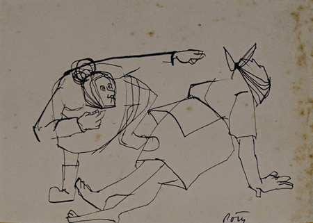 POTY LAZZAROTO (1924 - 1998) Título: Figuras Técnica: desenho a nanquim Medidas: 11 x 15 cm Assinado: canto inferior direito No estado (papel manchado).