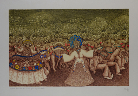 Título: "Escola de samba" Técnica: litografia aquarelada Tiragem: 42/100 Medidas: 38 x 57 cm Assinado: canto inferior direito Data/Local: 1980