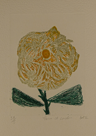 Título: "Rosa de cacho" Técnica: gravura Tiragem: 38/50 Medidas: 28 x 20 cm Assinado: canto inferior direito Data/Local: 1972