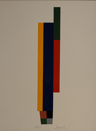 EDUARDO SUED (1925) Título: Composição Técnica: serigrafia Tiragem: 18/100 Medidas: 37 x 7 cm Assinado: canto inferior direito Com relevo seco de Arte Prints, São Paulo.