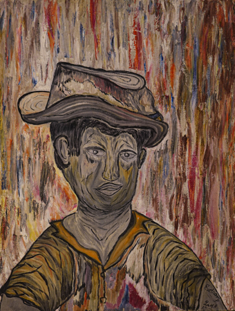 EDSON LIMA (1936) Título: "Prof. Mario Schenberg de chapéu" Técnica: óleo sobre tela Medidas: 65 x 50 cm Assinado: canto inferior direito Data/Local: 1969 Ex coleção crítico de arte Mário Schenberg, conforme carimbo de identificação, no dorso.