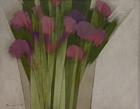 OLIMPIA COUTO (1947) Título: Flores Técnica: vinil encerado sobre tela colada em placa Medidas: 70 x 91 cm Assinado: canto inferior esquerdo e dorso Data/Local: 1991 - Belo Horizonte