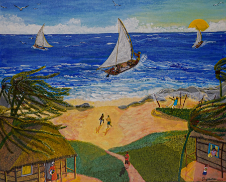 AIRTON DAS NEVES (1964) Título: "Jangadeiros" Técnica: acrílica sobre tela Medidas: 40 x 50 cm Assinado: canto inferior direito Data/Local: 20/03/2003 Com Certificado de Autenticidade da Galeria Jacques Ardies, datado de 30 de outubro de 2004, São Paulo - SP.